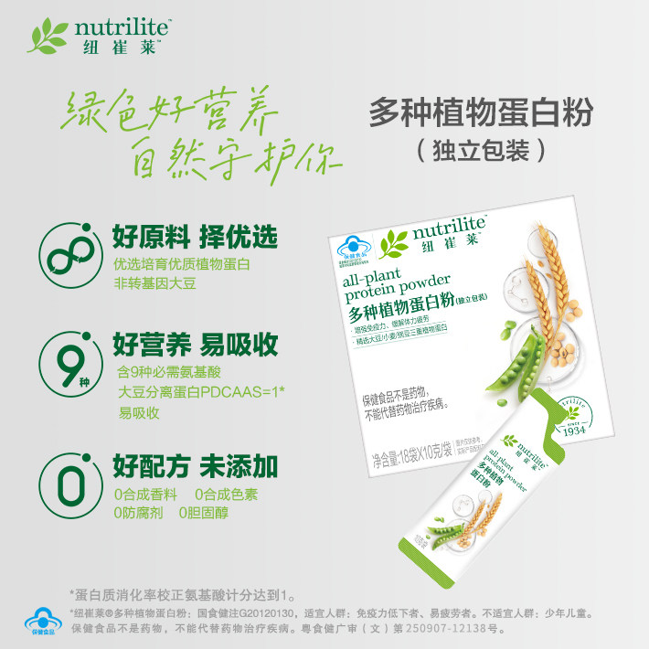 安利纽崔莱多种植物蛋白粉独立包装[优质植物蛋白质]营养代餐18袋