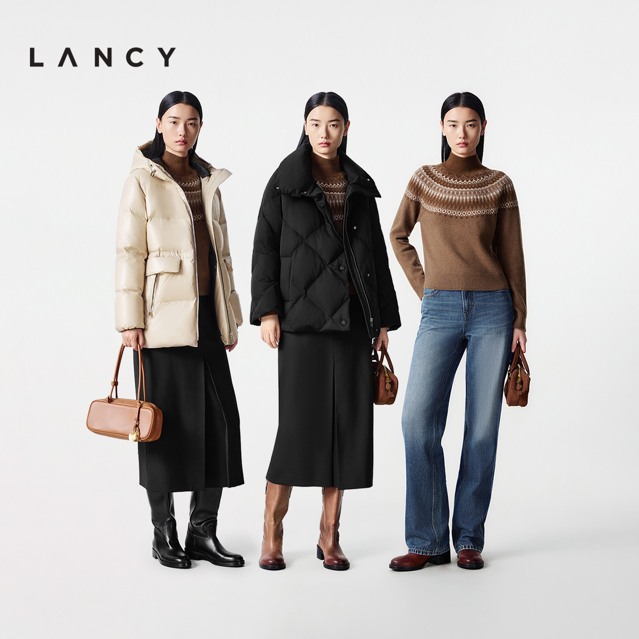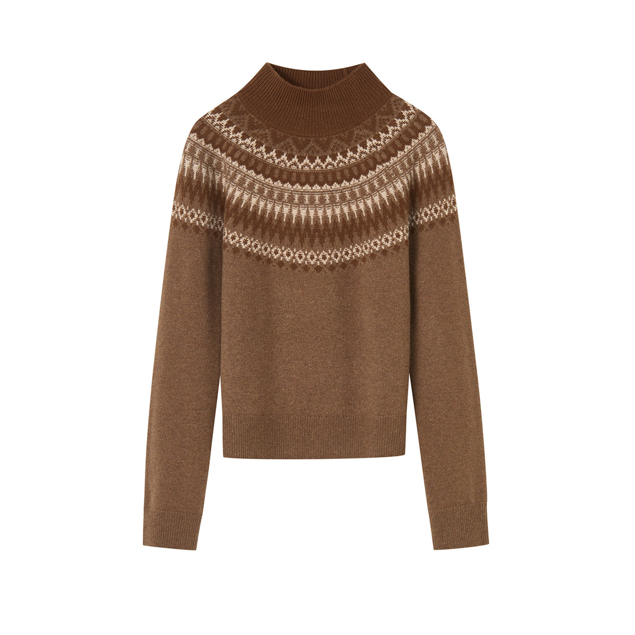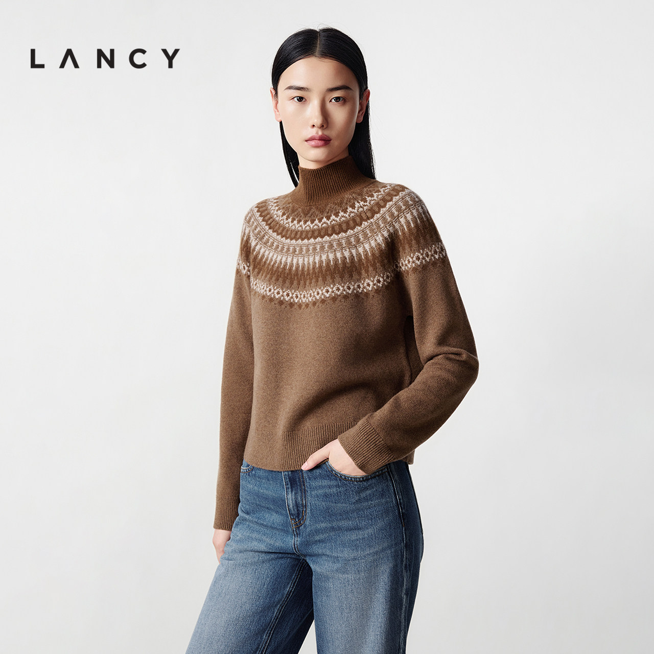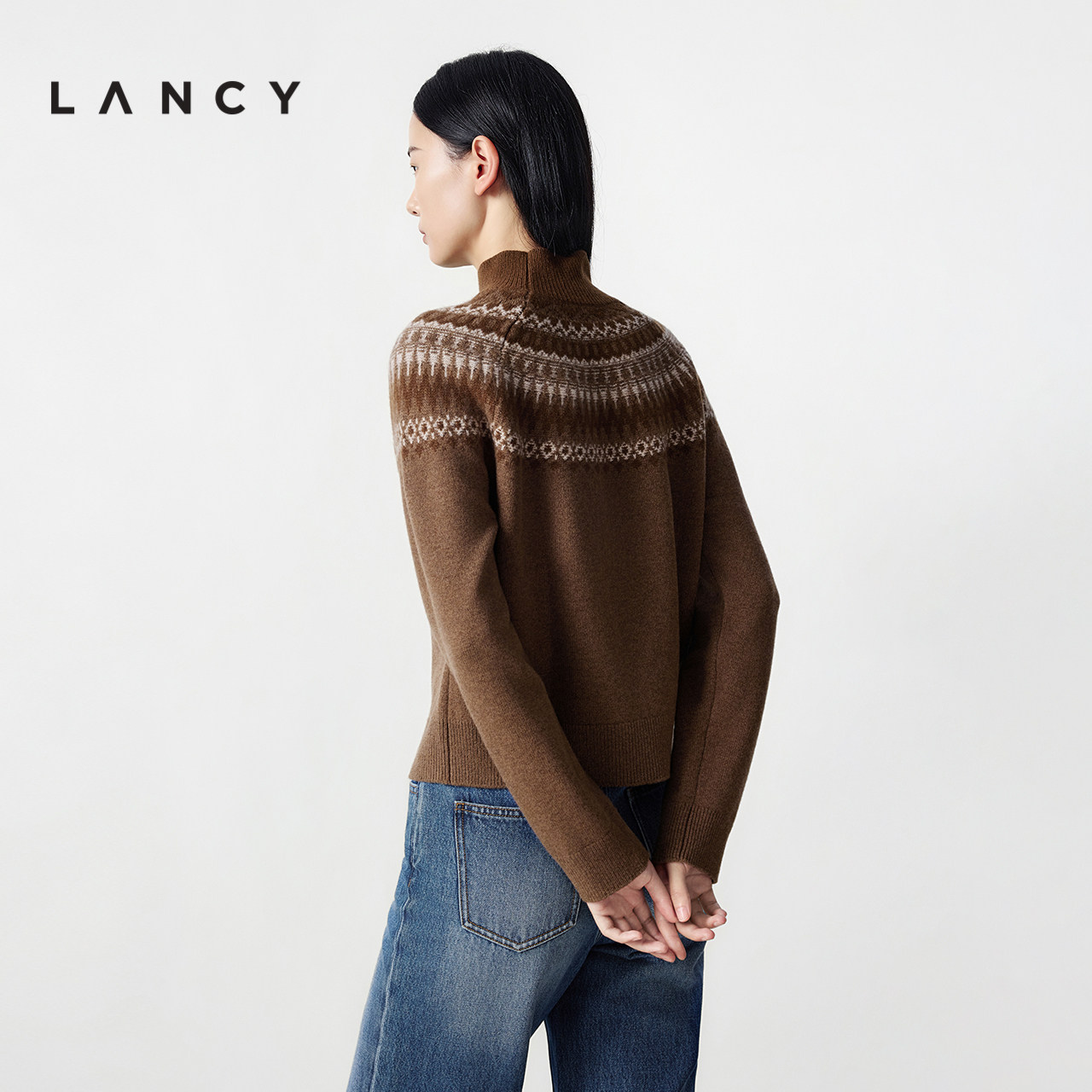 【羊毛】LANCY/朗姿2025冬新款复古费尔岛提花高领针织衫短上衣女