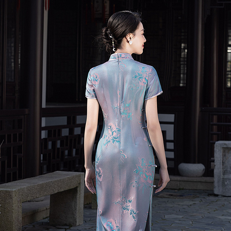 高端桑蚕丝复古真丝旗袍2025夏季新款妈妈中式气质修身显瘦高级感