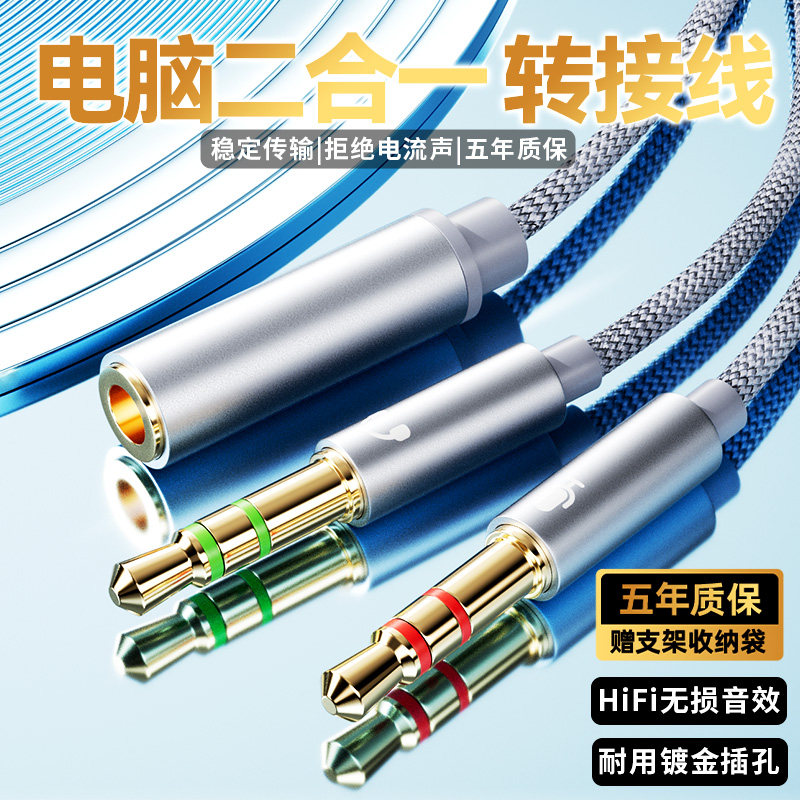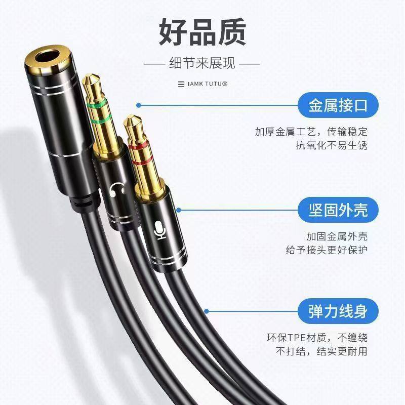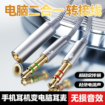 影巨人YR23车载电脑转接线音响二合一音频线耳机转换3.5mm麦克风