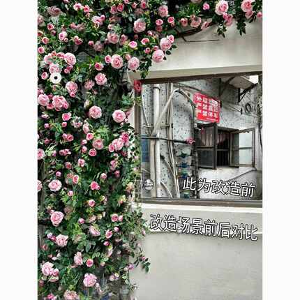 玫瑰网红瀑布打卡花墙仿真假花商场花店引流美陈布置莫奈玫瑰花