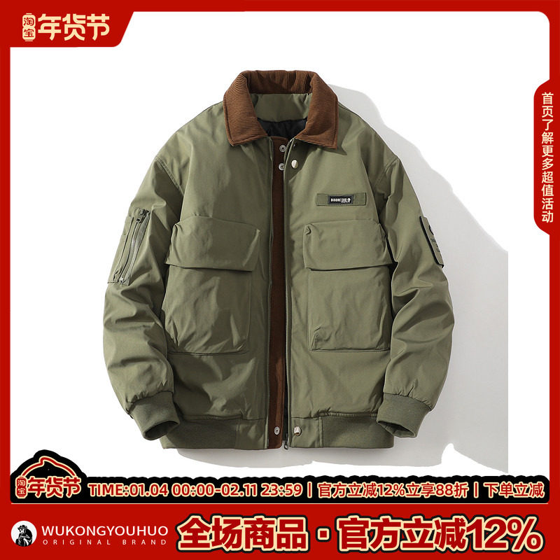 悟空有货复古潮牌日系工装翻领棉衣男女冬季街头宽松保暖休闲棉服