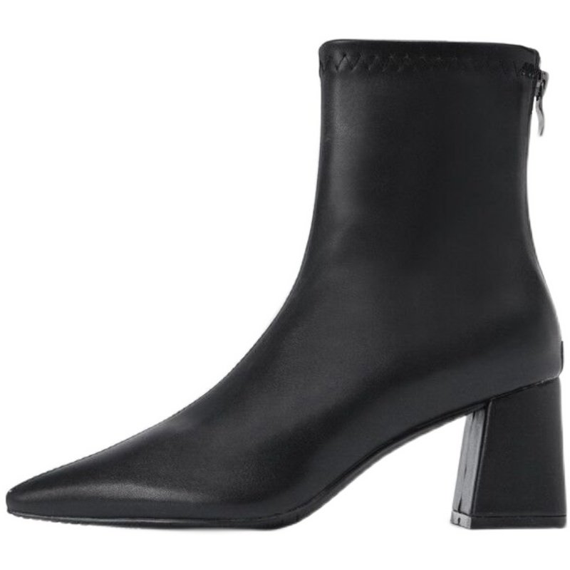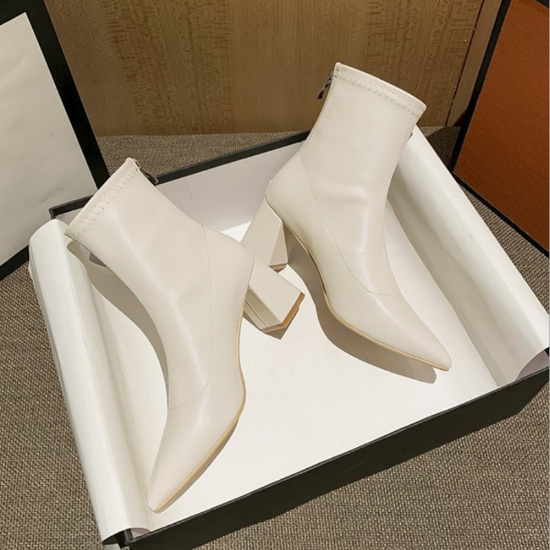 2023新款真皮小码女靴31 32 33白色短靴34小个子大码4344粗高跟靴