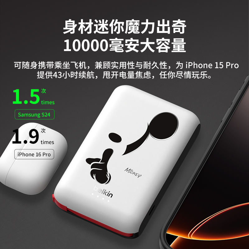 【3C认证】贝尔金米奇限定充电宝自带线10000mAh大容量20WPD快充便携移动电源适用iphone16苹果手机可上飞机