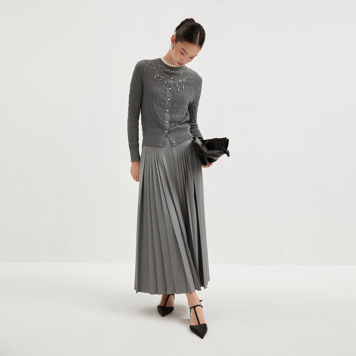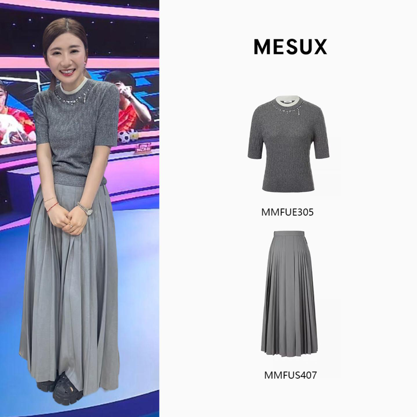 【福原爱同款】MESUX米岫新品女百褶裙长款半身裙MMFUS407