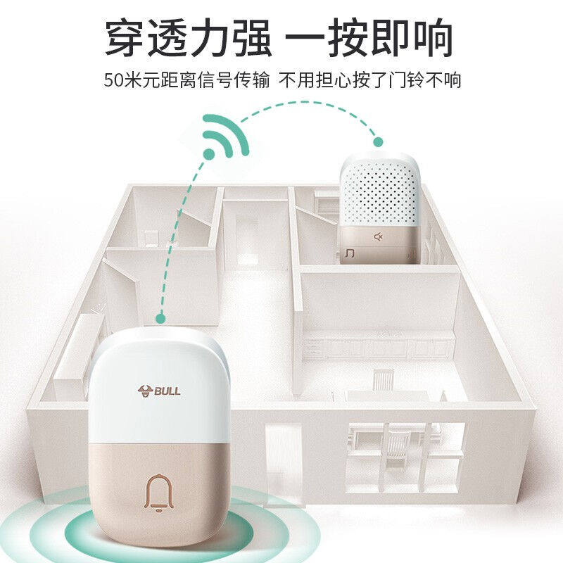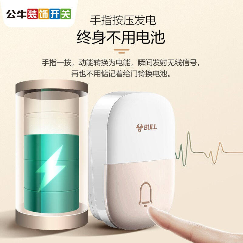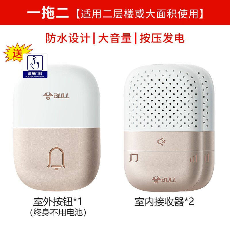 公牛门铃无线家用远距离自发电老人呼叫器别墅遥控电子门铃一拖二