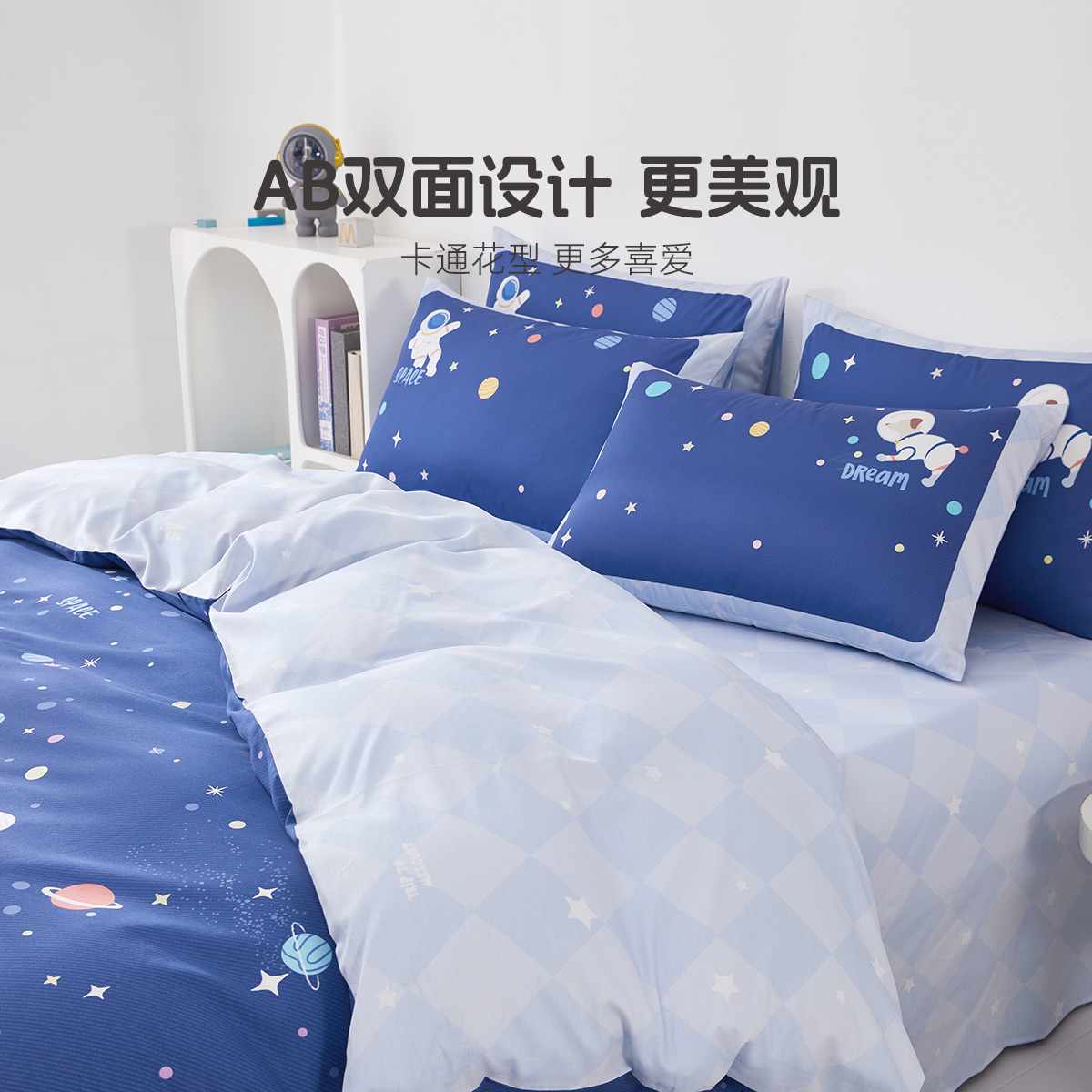 水星家纺全棉三/四件套母婴A类抑菌套件儿童纯棉卡通床单被套床品