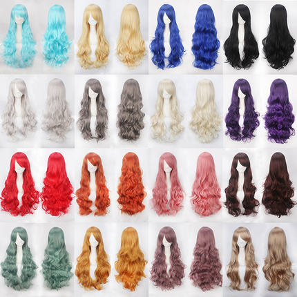 馒头家80CM假发 cosplay女万用长卷发女多色黑银灰白粉红动漫假发