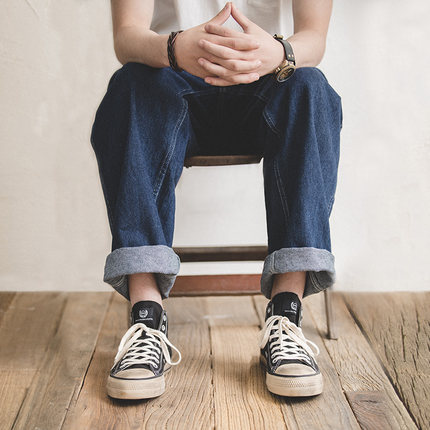 马登工装美式复古直筒深蓝色坠感
