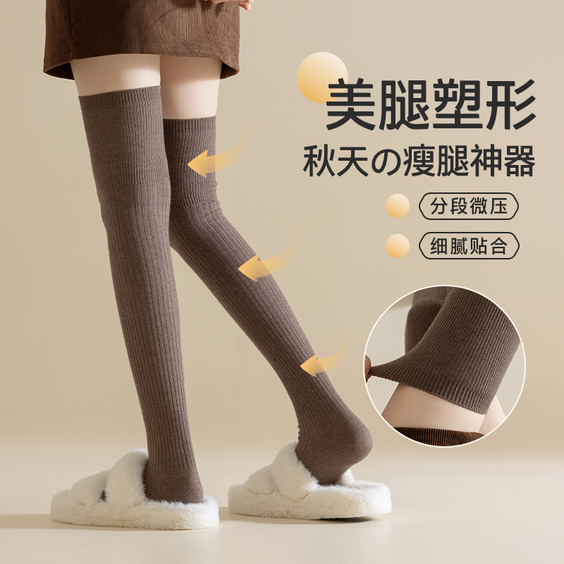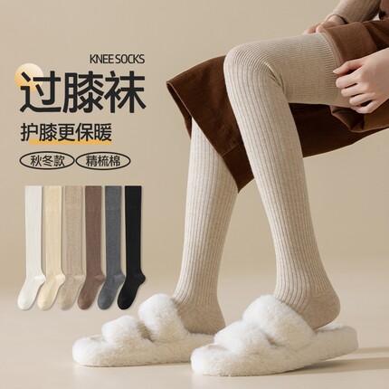 过膝袜子女秋冬羊毛长筒袜加厚保暖护膝大腿袜纯棉压力显瘦高筒袜