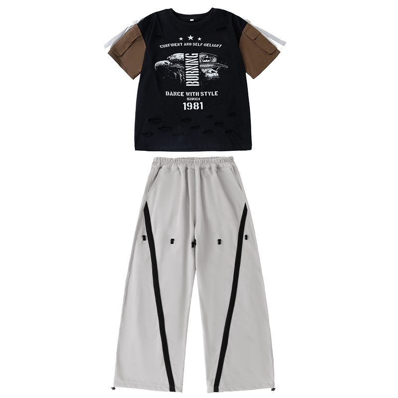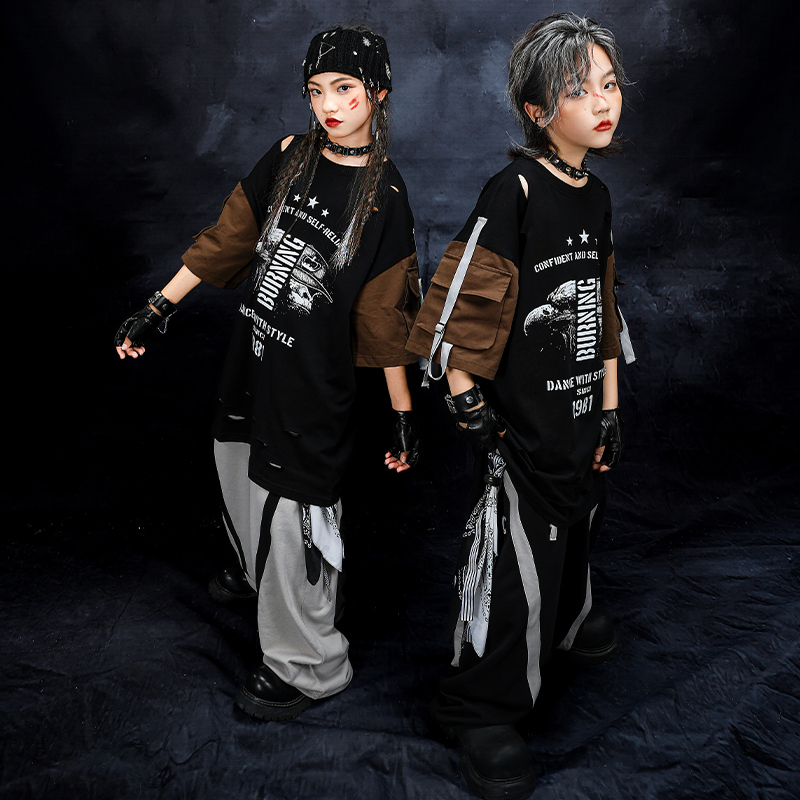 少儿街舞潮服男女童帅气宽松T恤运动裤嘻哈hiphop舞蹈走秀演出服