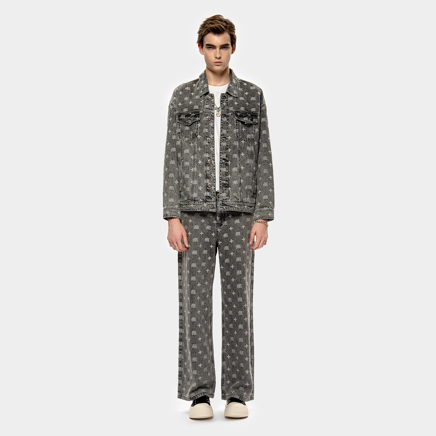 MET initaly麦特美式复古印花牛仔外套男秋季新款休闲百搭夹克