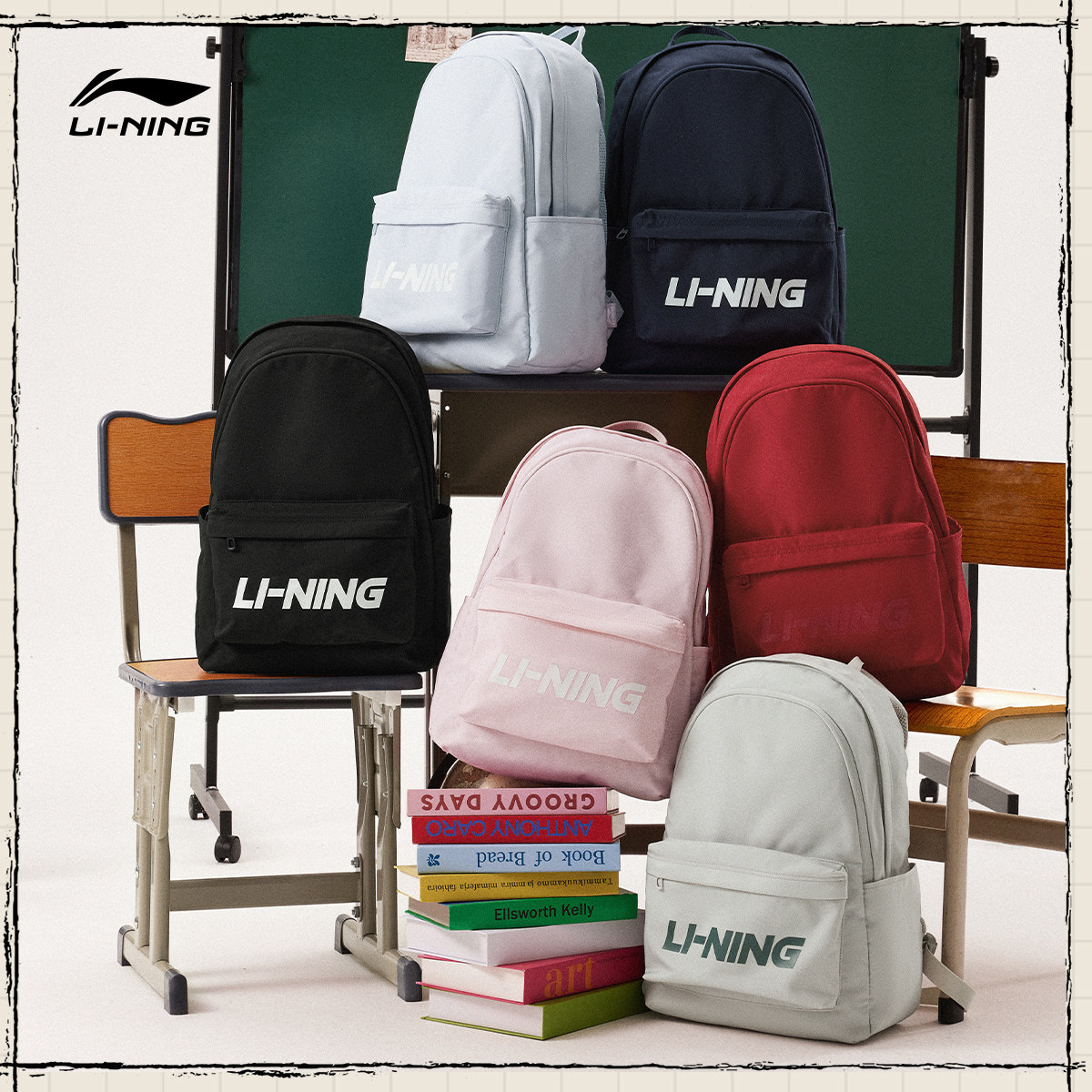 李宁双肩包女包2026新年鸿运穿搭红色通勤休闲运动背包学生书包男