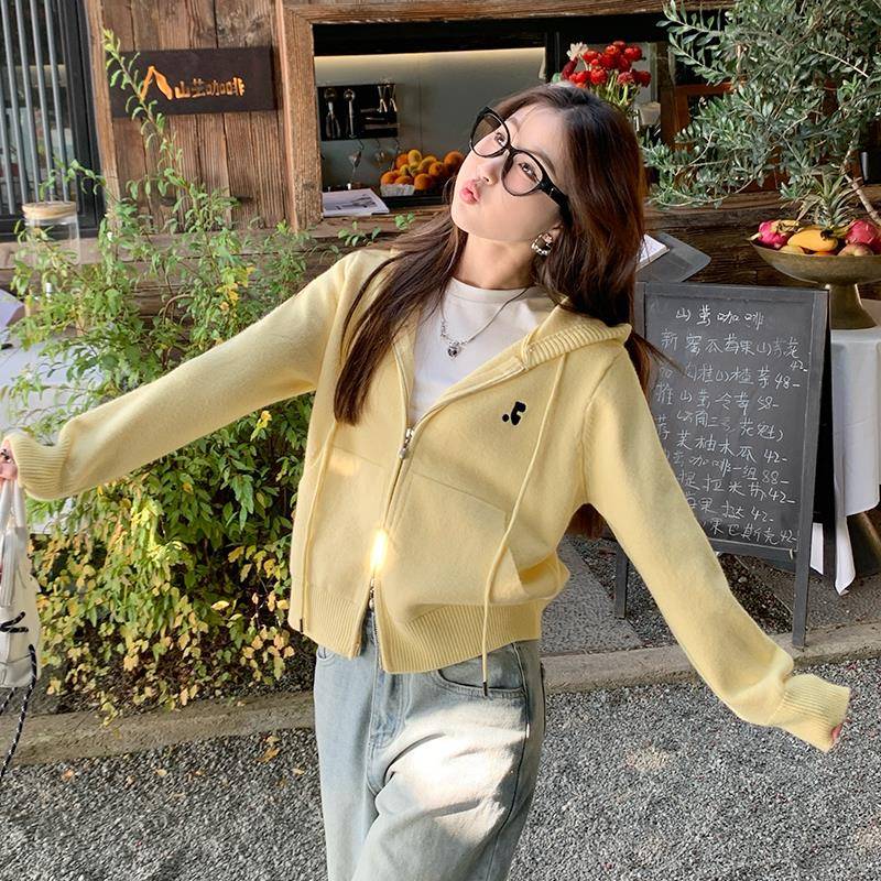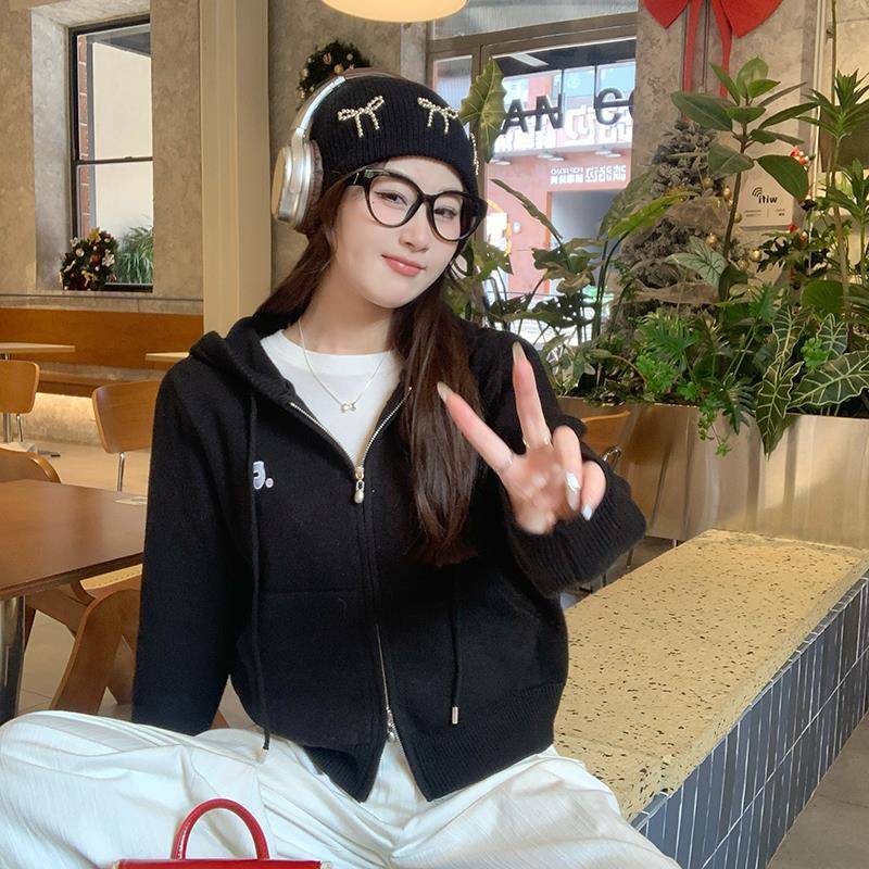 苏三三 针织开衫2025新款毛衣外套春季女装初春韩系穿搭连帽上衣