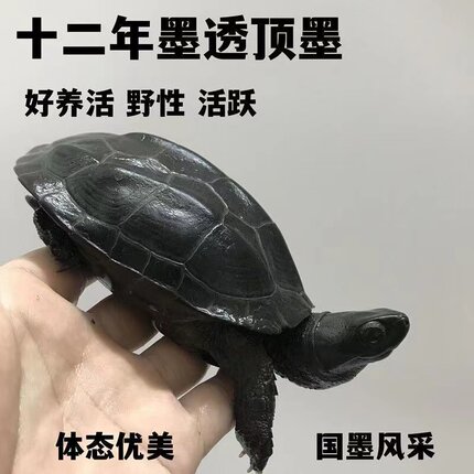墨龟纯种全黑龟苗外塘草龟公乌龟活物长寿宠物龟观赏耐活中华碳墨