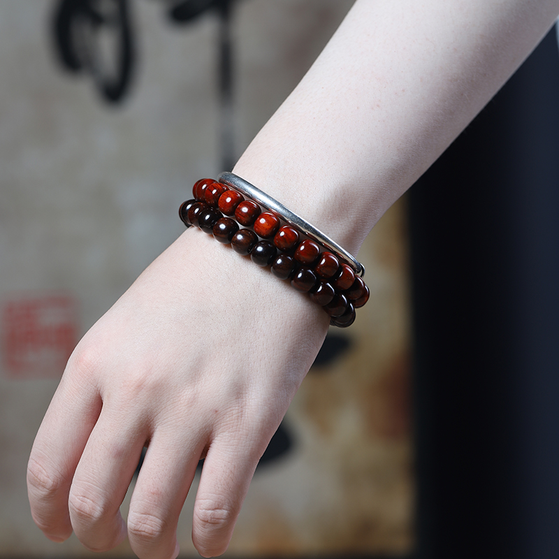 小叶紫檀老型桶珠手串高油密金星手链盘玩念珠佛珠文玩男女款