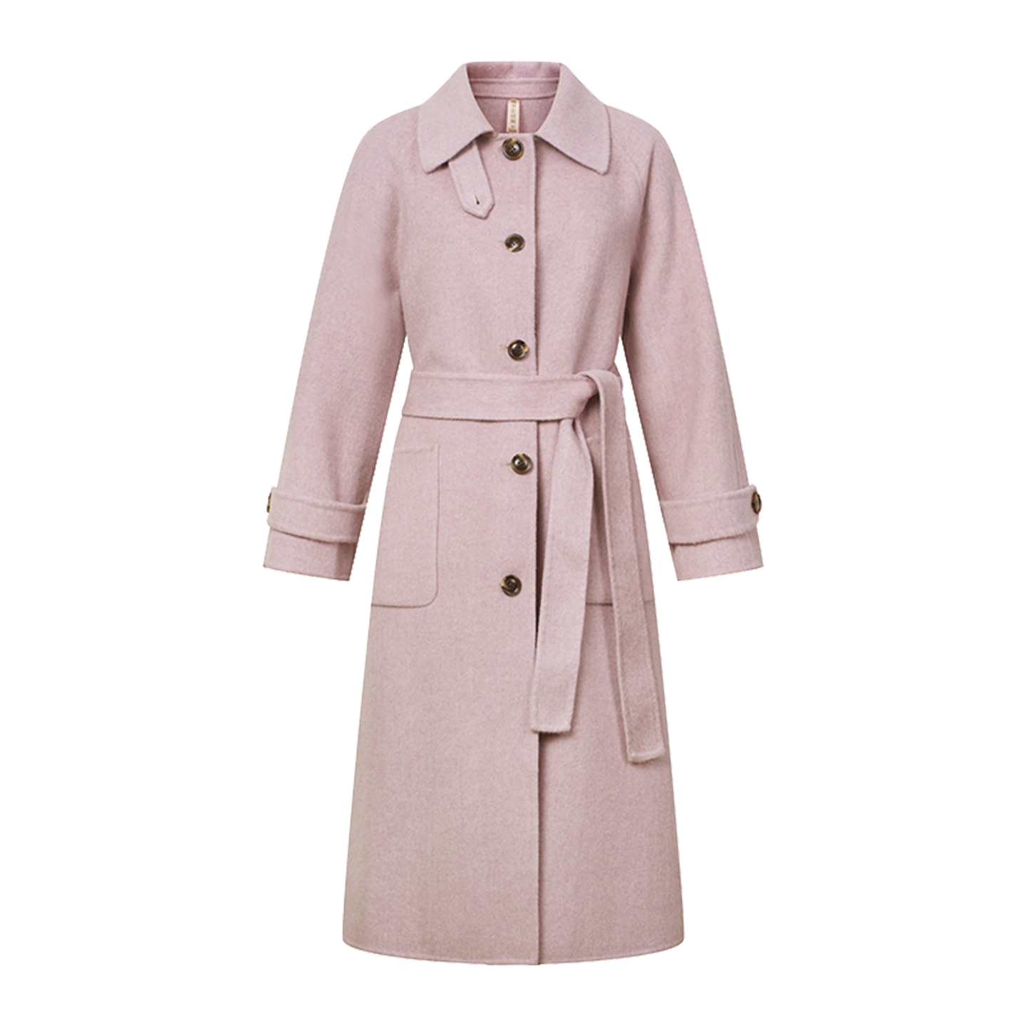 HeyDress插肩袖毛呢外套女秋冬立领宽松系带羊毛大衣气质感双面呢
