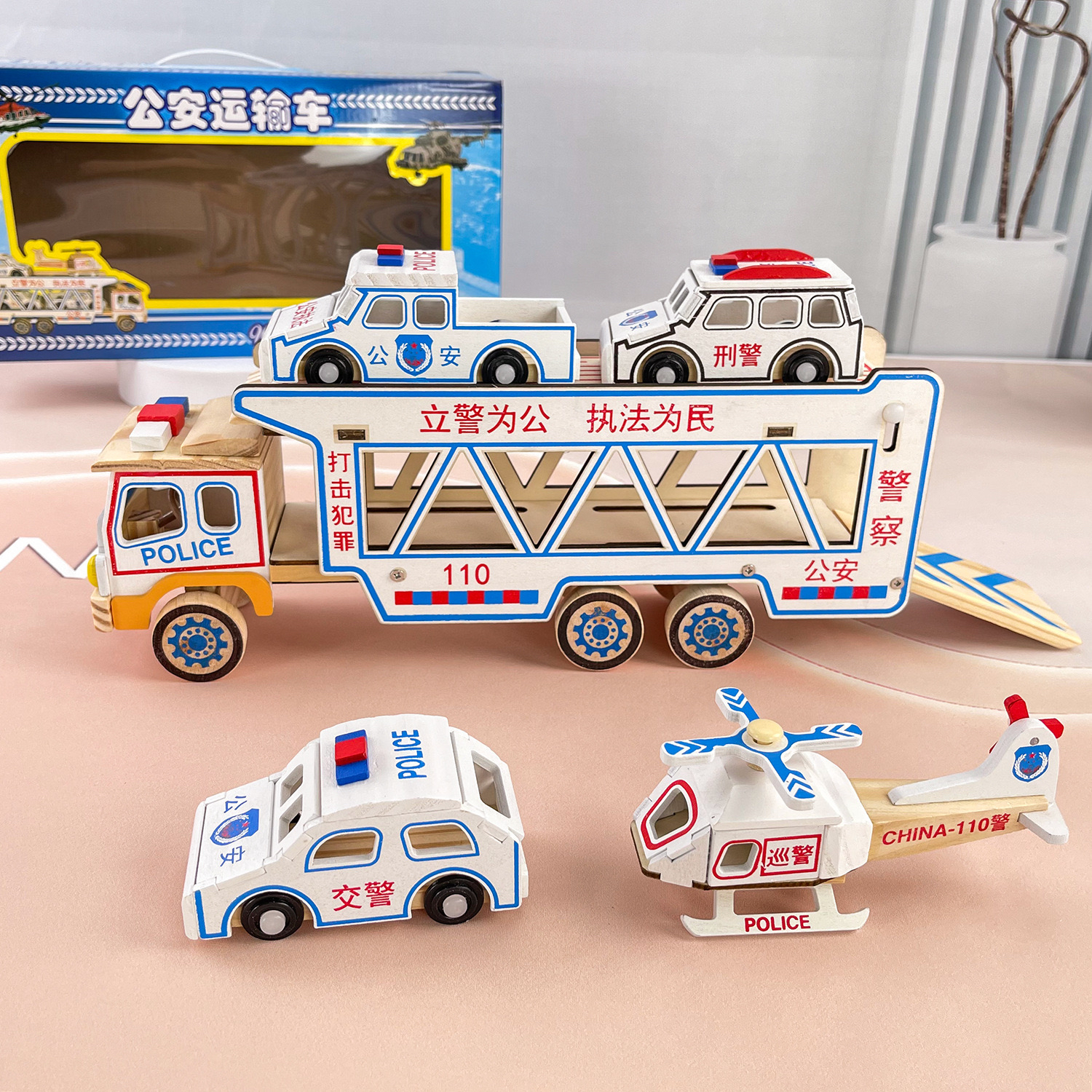 木质公安车特警车消防车急救车火箭车轰炸机军车儿童车卡车模型