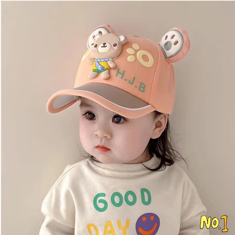宝宝帽子儿童鸭舌帽春秋季男童遮阳帽防晒可爱小熊春夏女童棒球帽