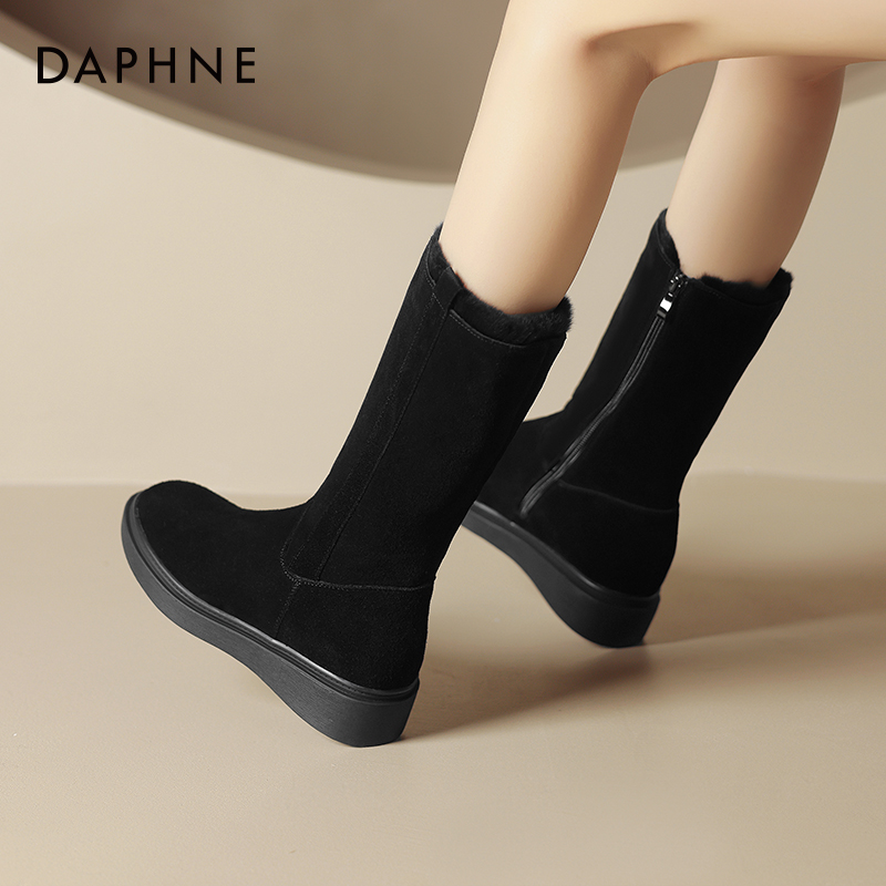 达芙妮中筒厚底雪地靴女冬季