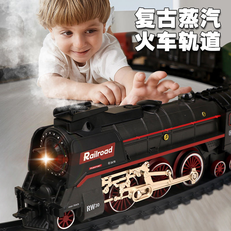 复古蒸汽电动小火车仿真合金高铁轨道车绿皮列车模型礼物玩具男孩