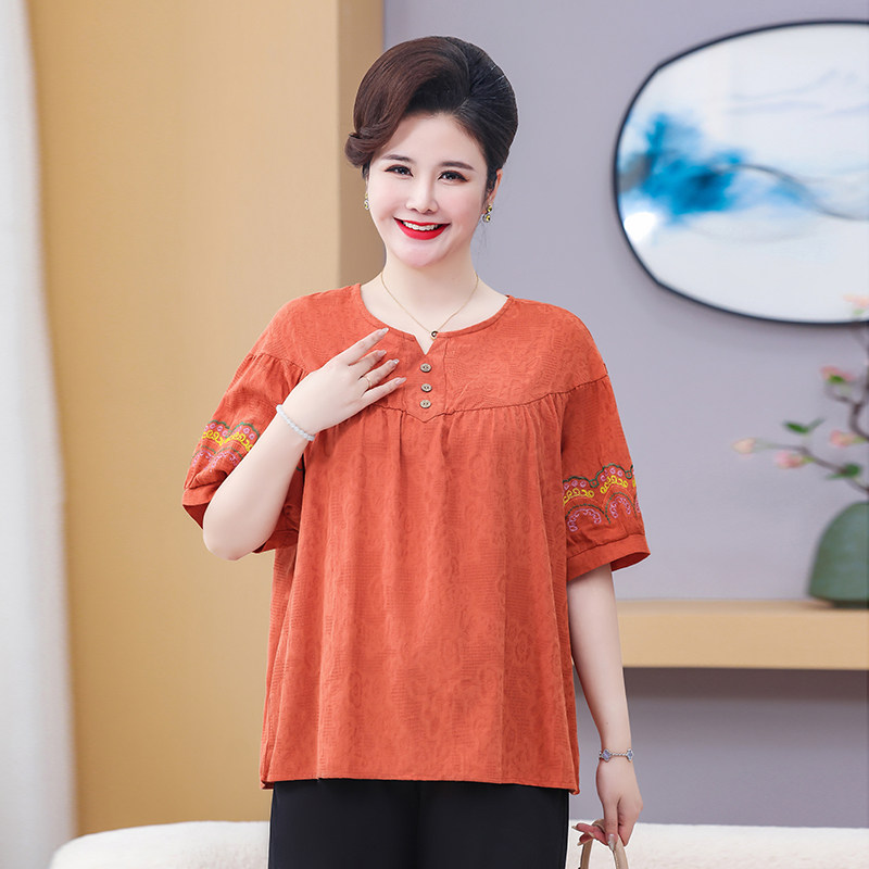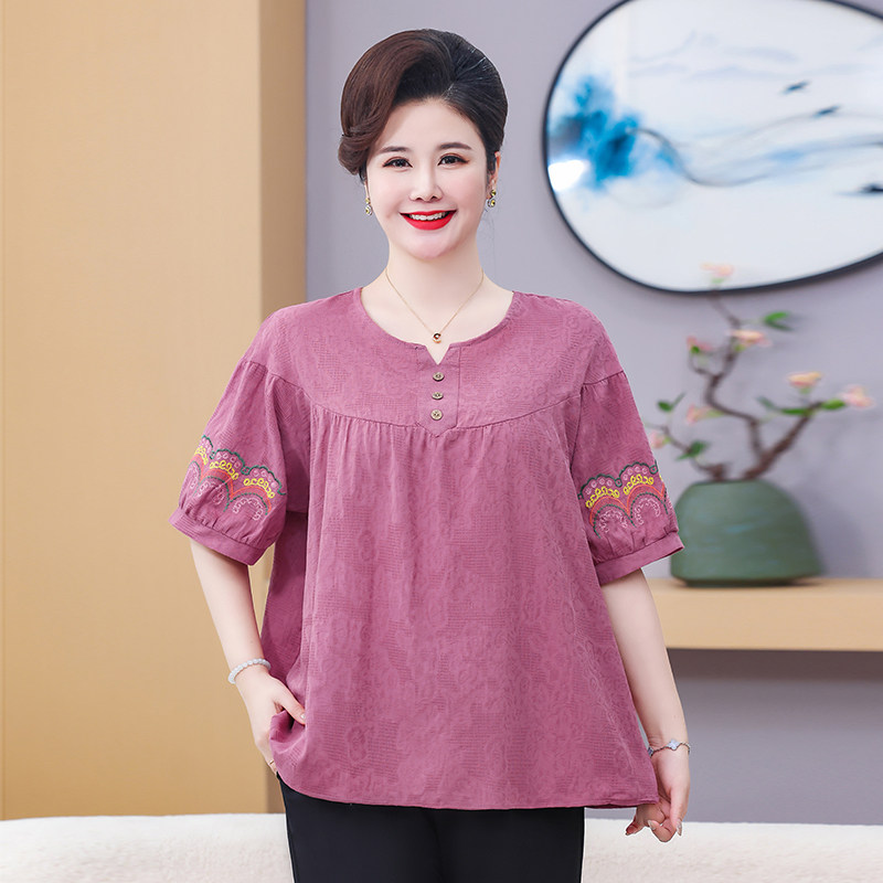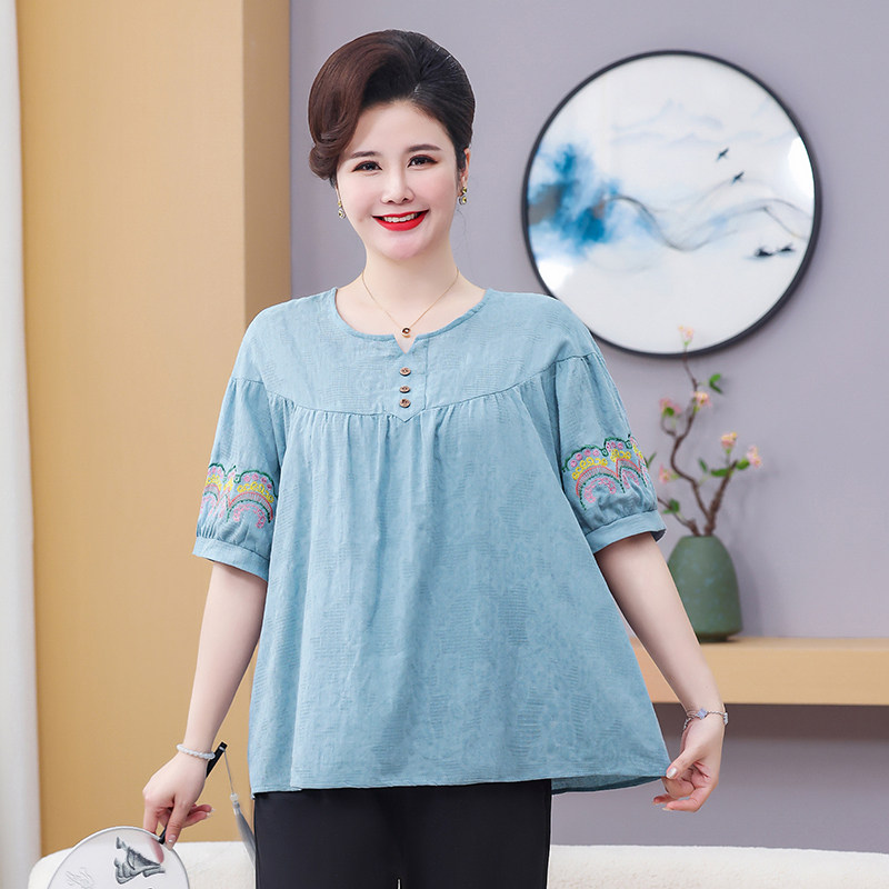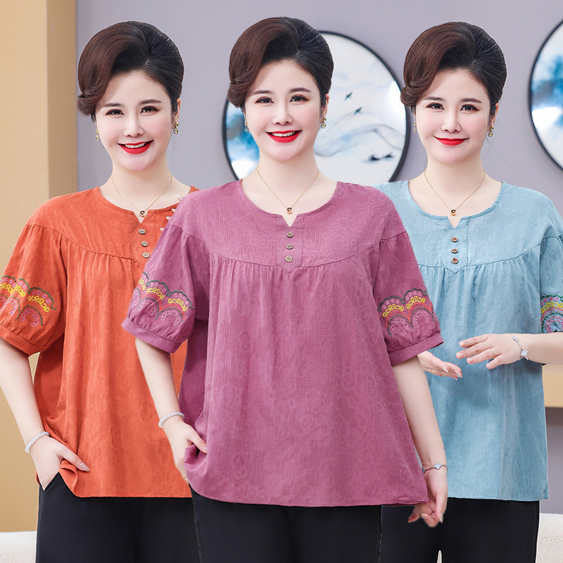 2025新款中老年人夏装女奶奶夏季套装加肥大码妈妈棉麻短袖上衣服