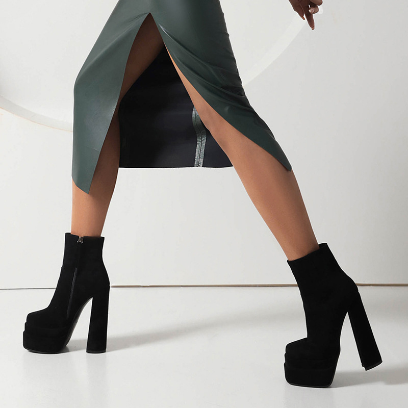 12.5cm超高跟粗跟马丁靴女英伦风厚底短靴防水台弹力瘦瘦靴单