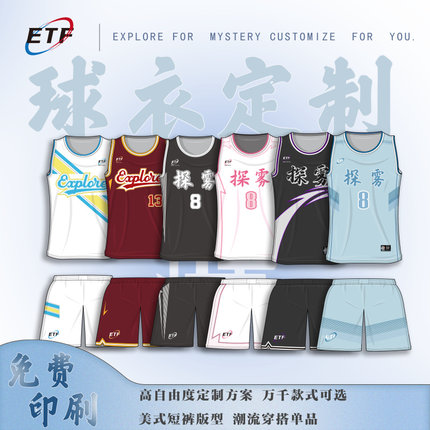 全身印美式团队定制篮球服套装