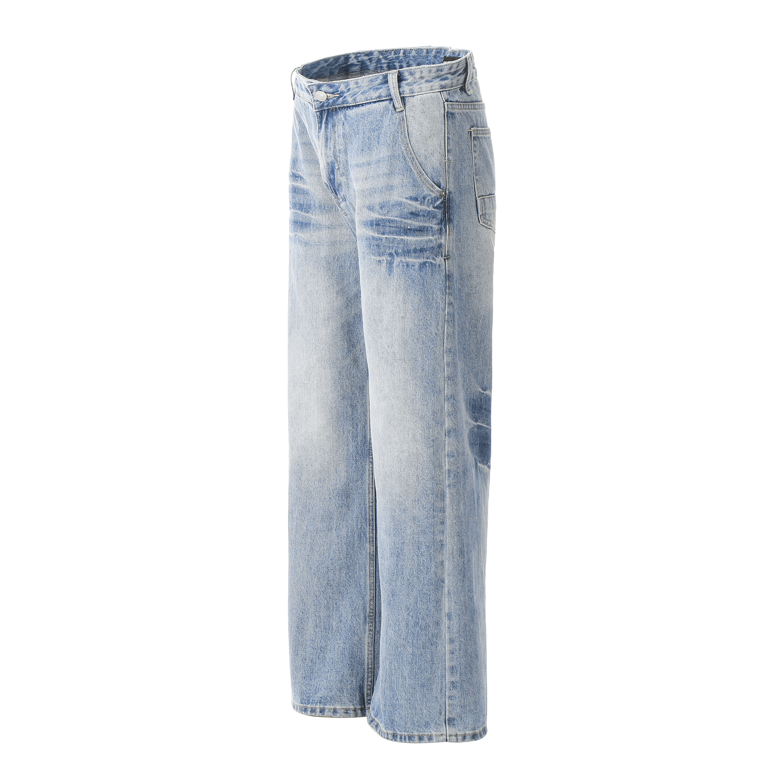 ZLAYCO美式复古水洗浅色磨白闪电竹节纹直筒宽松牛仔裤