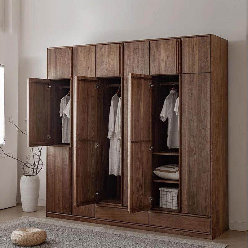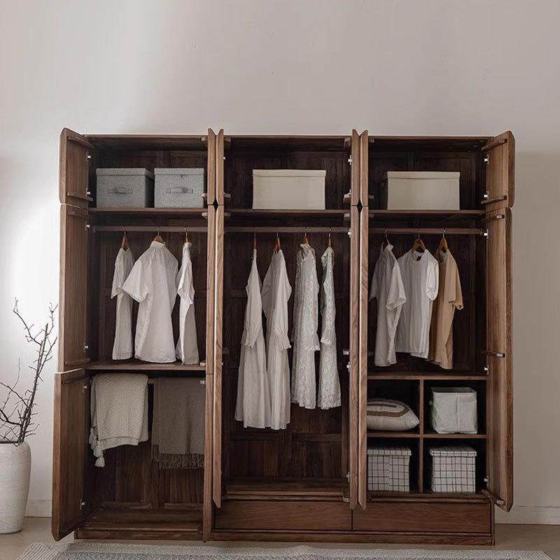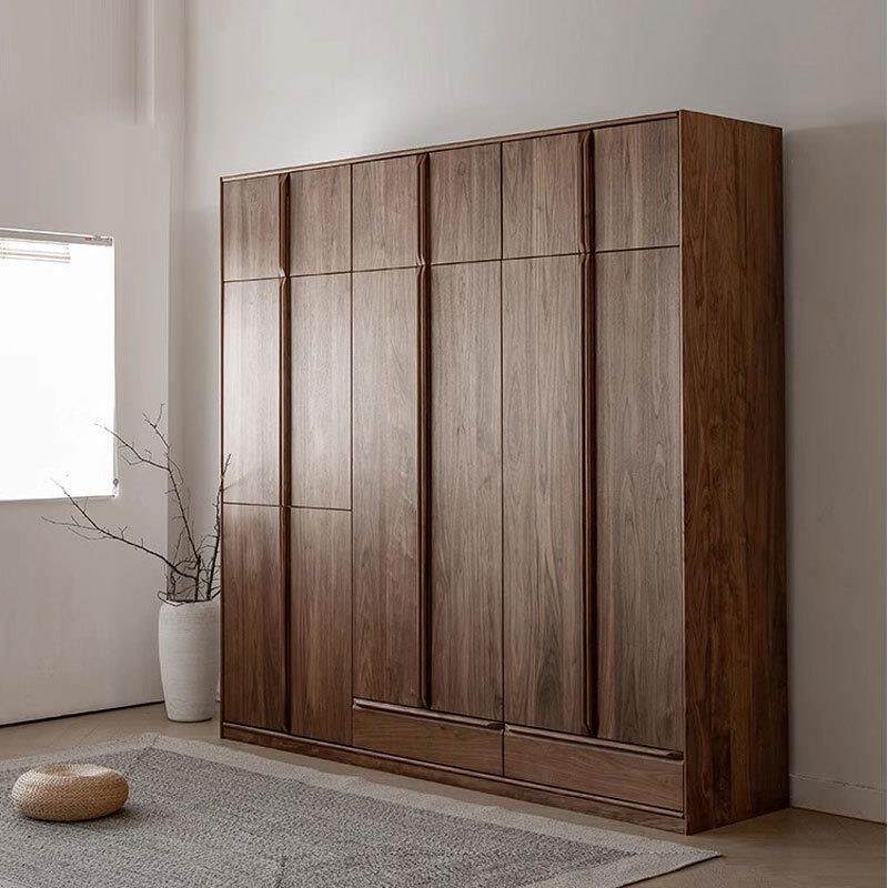 北美黑胡桃木实木衣橱对开整体衣帽间原木樱桃木多功能大容量衣柜