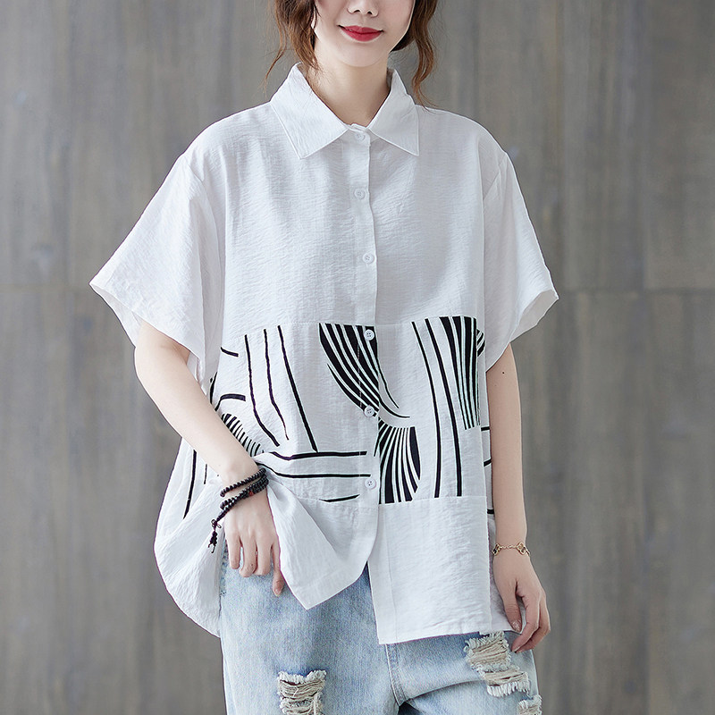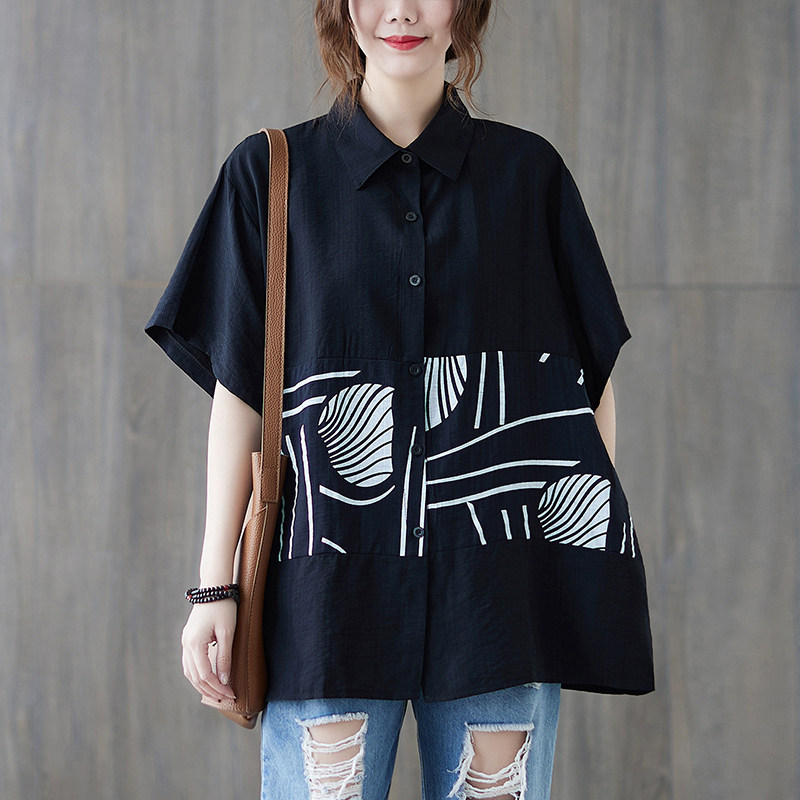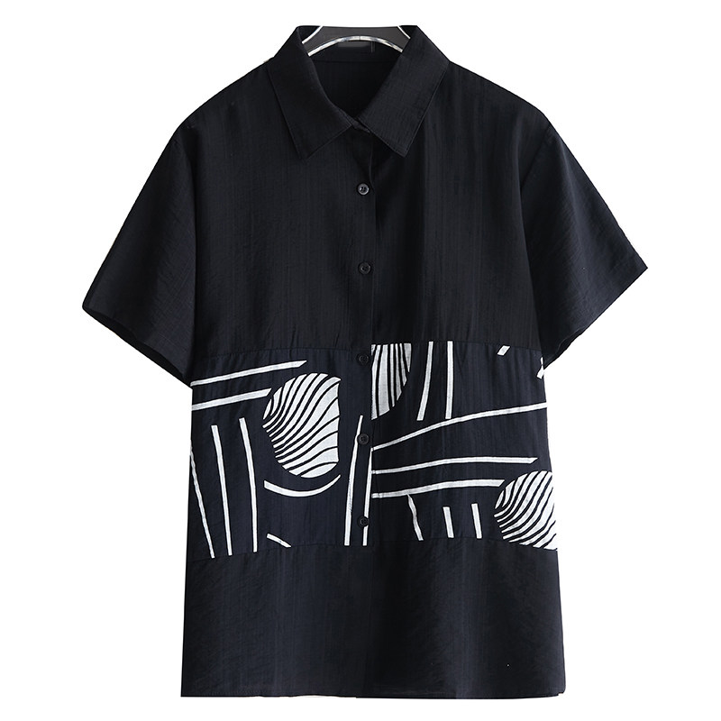 2024夏季新款时尚拼接大码短袖衬衫女宽松200斤显瘦百搭韩范衬衣