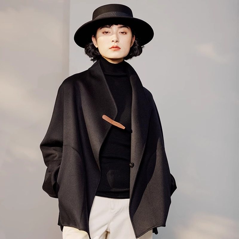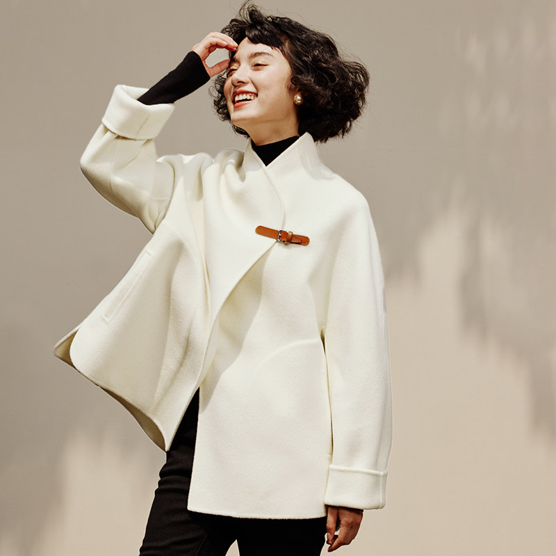 *WDY05021茉莉雅集H家意大利90羊毛10羊绒双面呢皮包扣长短款大衣