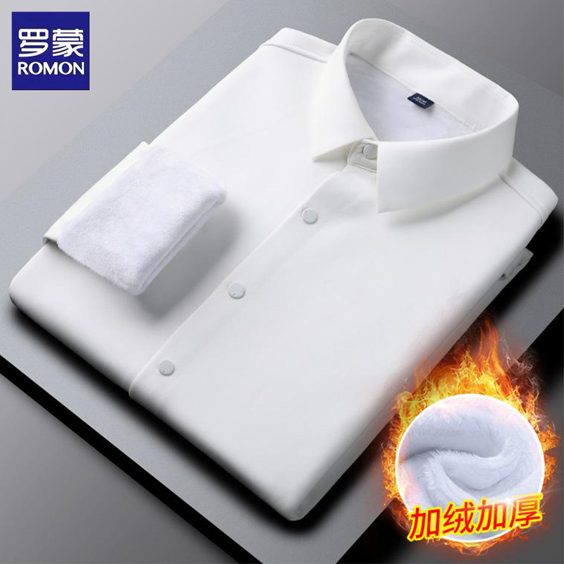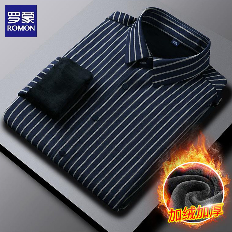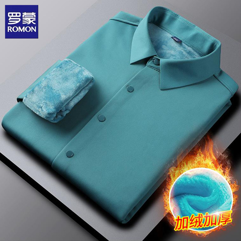 罗蒙加绒衬衫男士冬季商务休闲加厚保暖免烫抗皱衬衣上衣打底衫