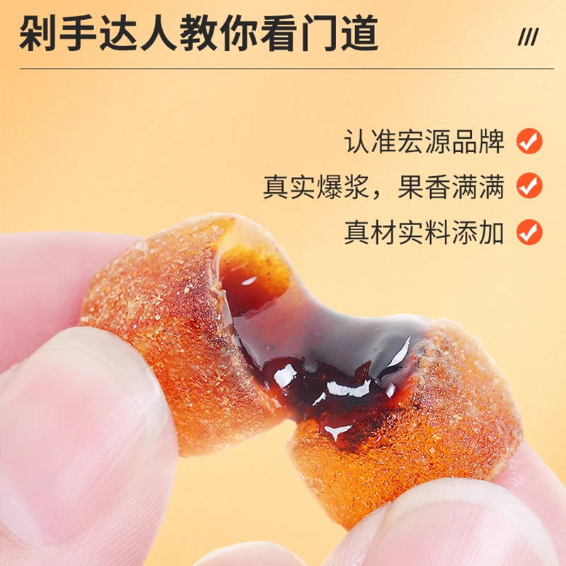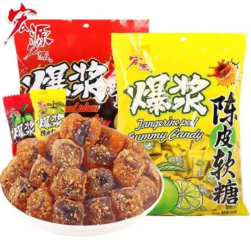 宏源新品爆浆糖陈皮话梅软糖年货喜糖网红办公室休闲前台招待零食
