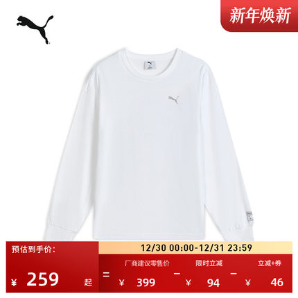 宽松白色长袖圆领T恤男女款PUMA彪马官方新款冬季运动上衣 635050