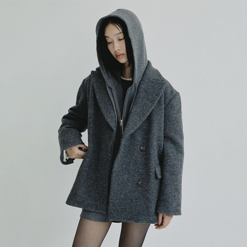 QEWKI秋冬新款双面羊绒大衣女短款小个子羊毛呢外套