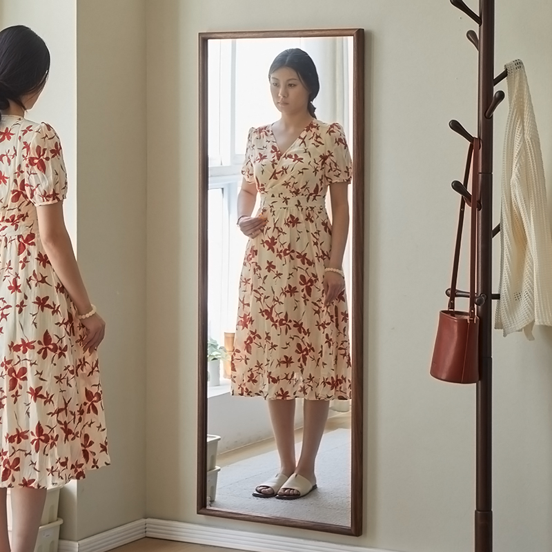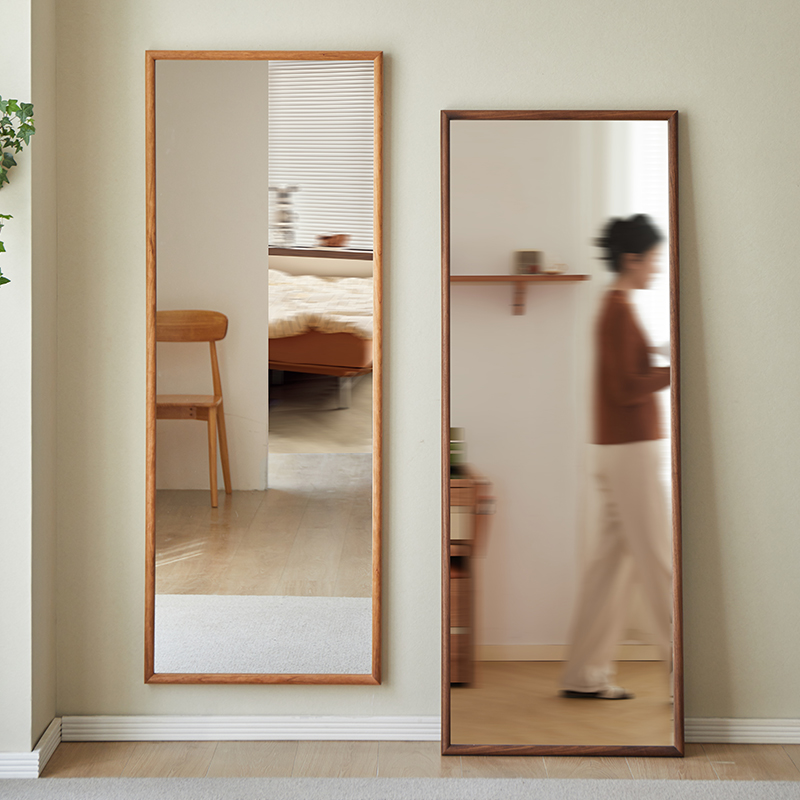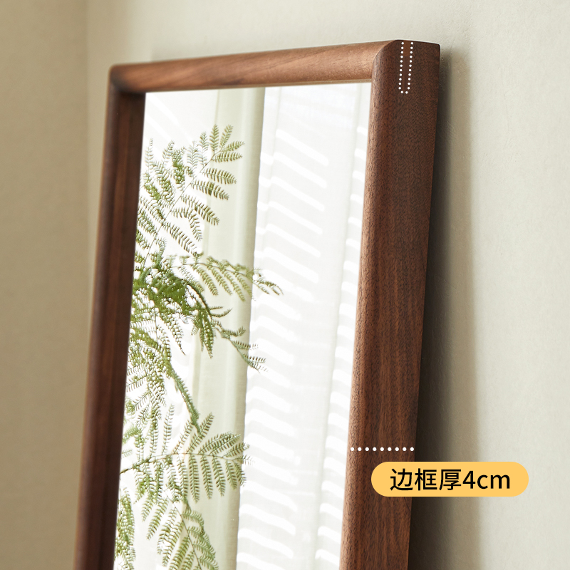 度物简约全身镜黑胡桃实木落地镜家用超白防爆穿衣镜壁挂试衣镜子