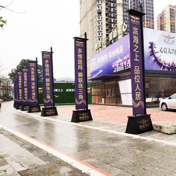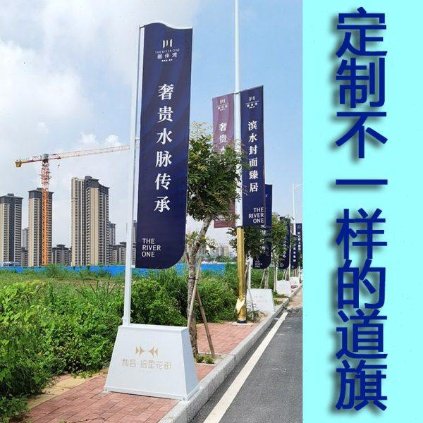 加强户外楼盘道旗定制铁质注沙5米旗杆落地广告旗房地产玻璃立牌