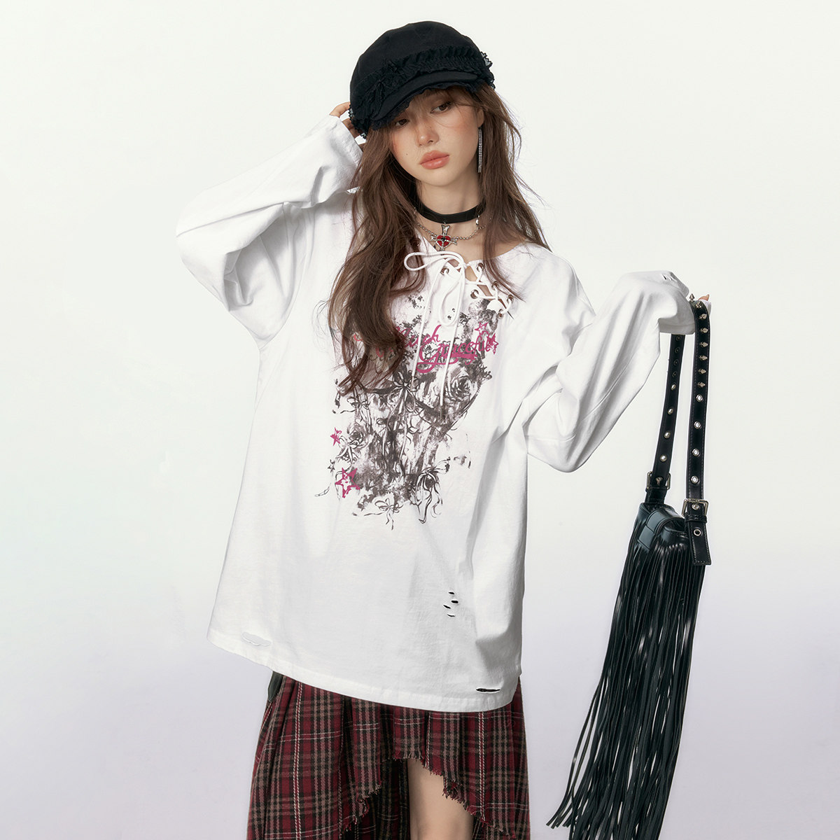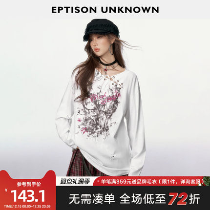 EPTISON长袖T恤女2025秋季新款宽松独特印花绑带设计纯棉甜辣上衣
