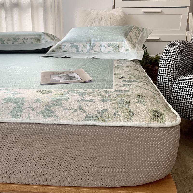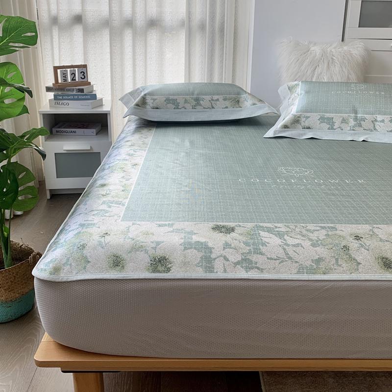 高端夏季冰丝席三件套床笠款可机洗水洗空调凉席双人可折叠1.8米