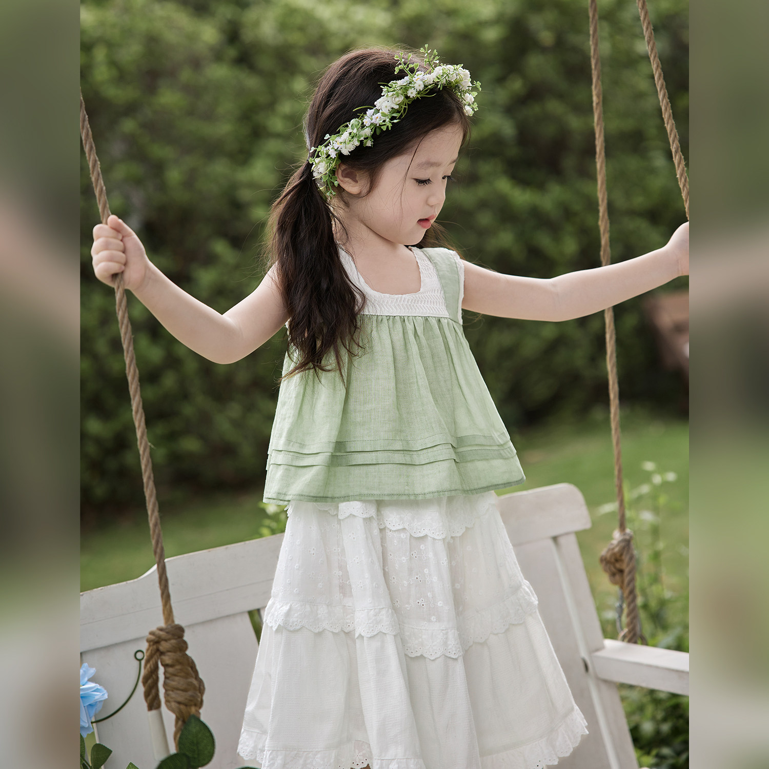 陈大猪小O宝 宝宝森系连衣裙女洋气2024夏季新婴儿背心蕾丝半身裙