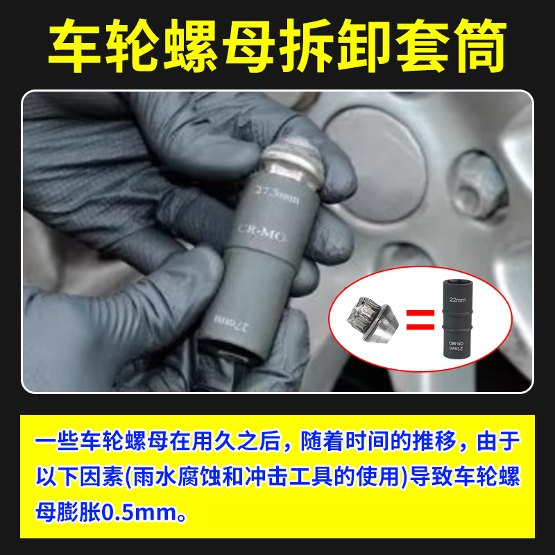 车轮螺母拆卸套筒18.5x19.5mm适用福特路虎双头轮胎套筒双向套筒