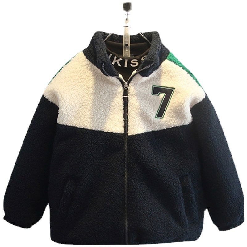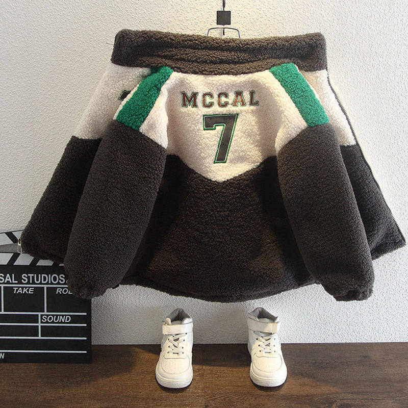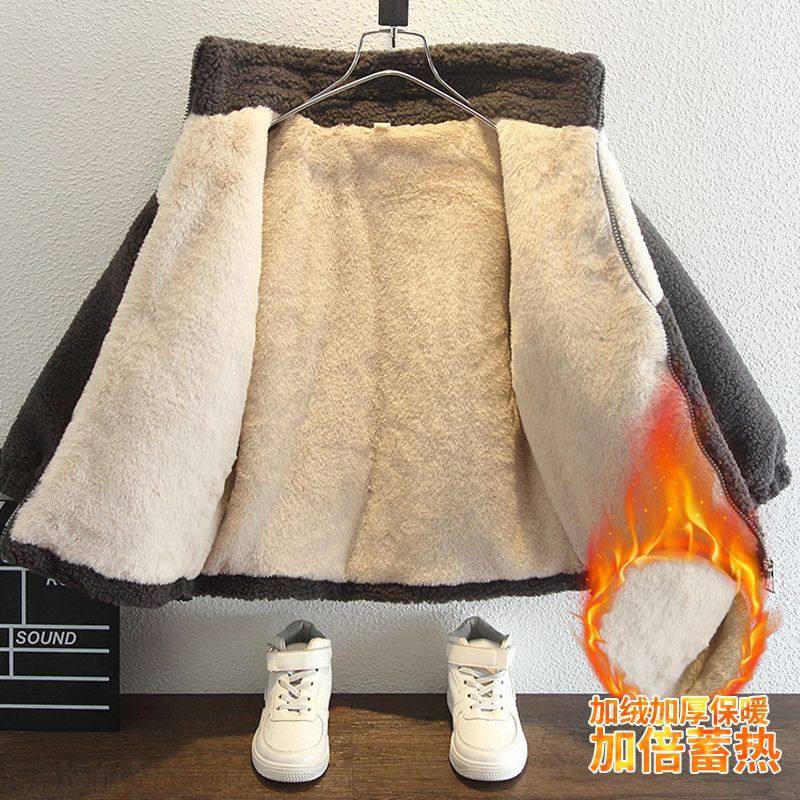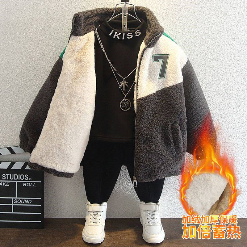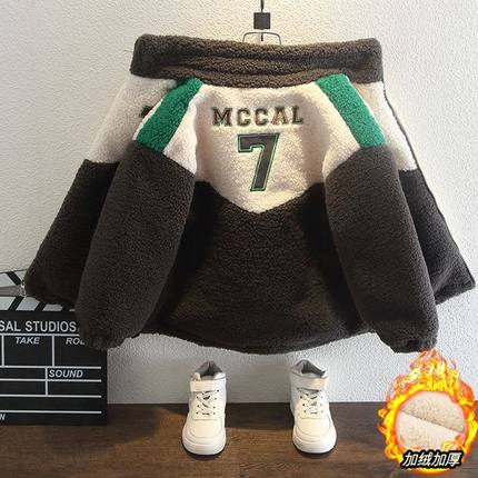 男童加绒外套冬洋气2025年新款宝宝冬装羊羔毛儿童加厚棉服毛毛衣