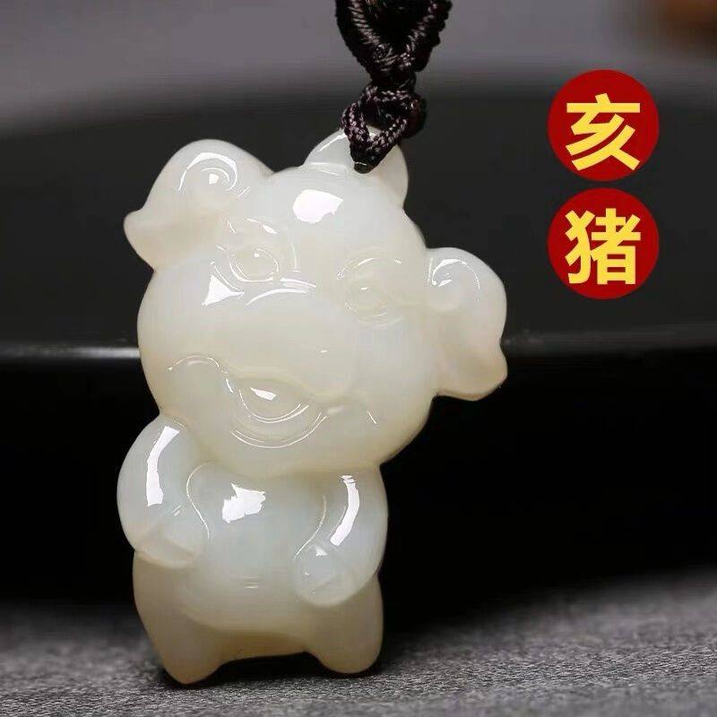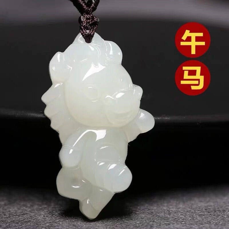 【买一赠六】正品天然新疆白玉十二生肖属相男女款吊坠项链新款特
