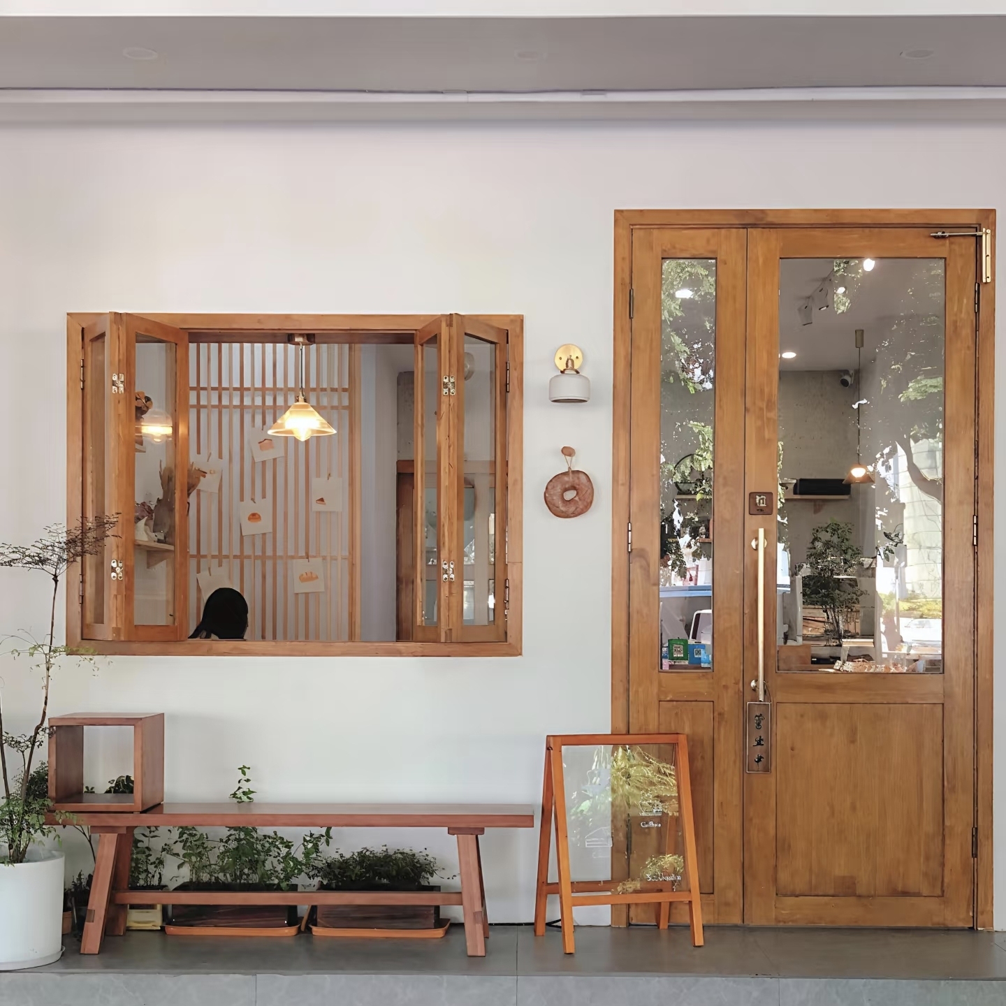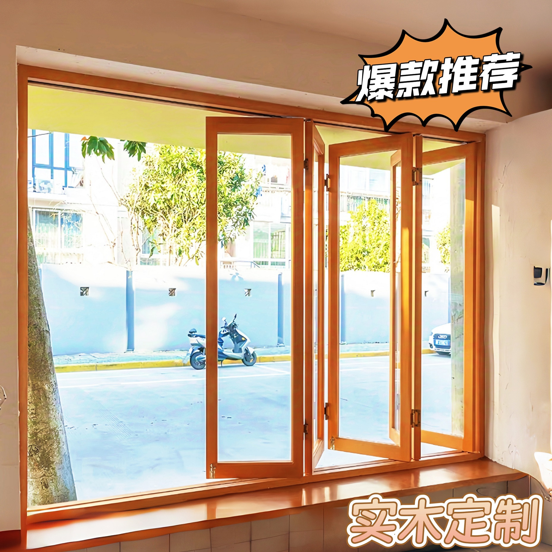 实木门窗定制中式上下折叠左右推拉玻璃窗双开门奶茶咖啡甜品店铺