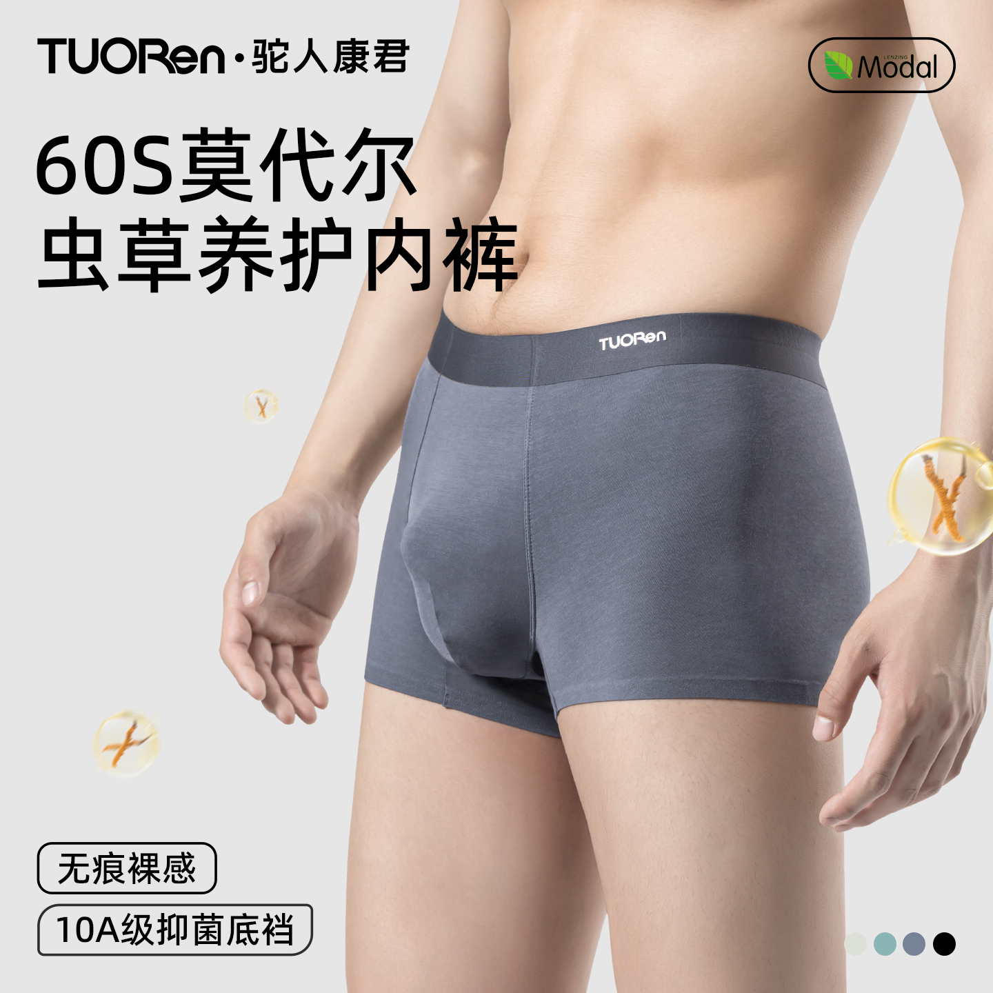 驼人康君虫草唤醒内裤男士平角裤衩棉质透气宽松四角短裤头