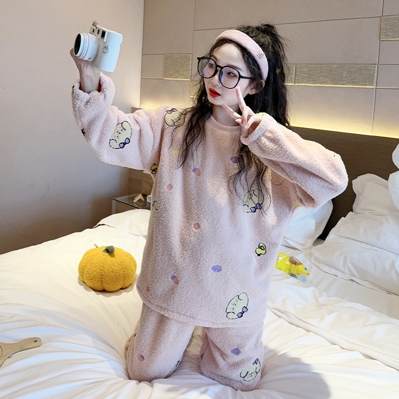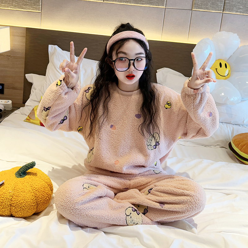 女童睡衣秋冬2025新款儿童加厚家居服大童女孩冬季珊瑚法兰绒套装