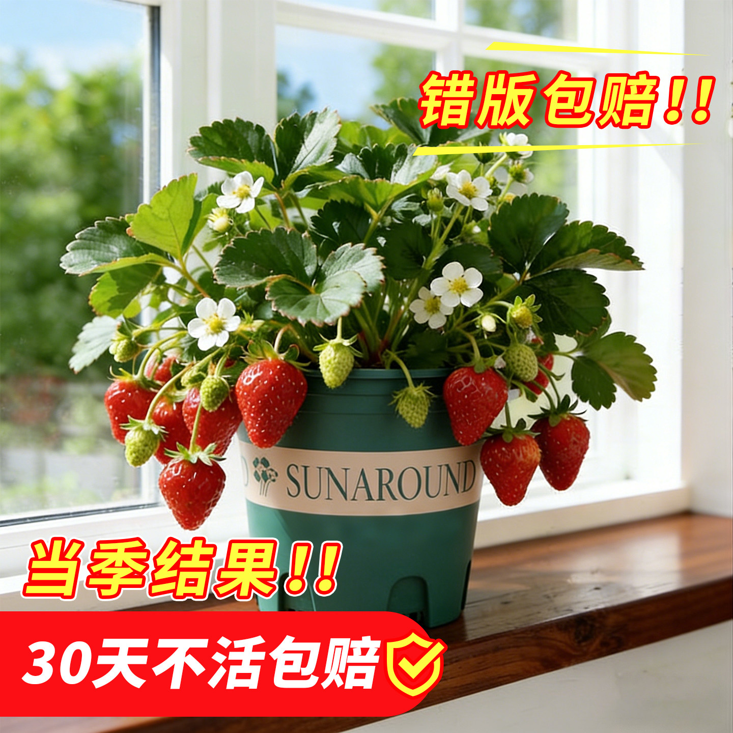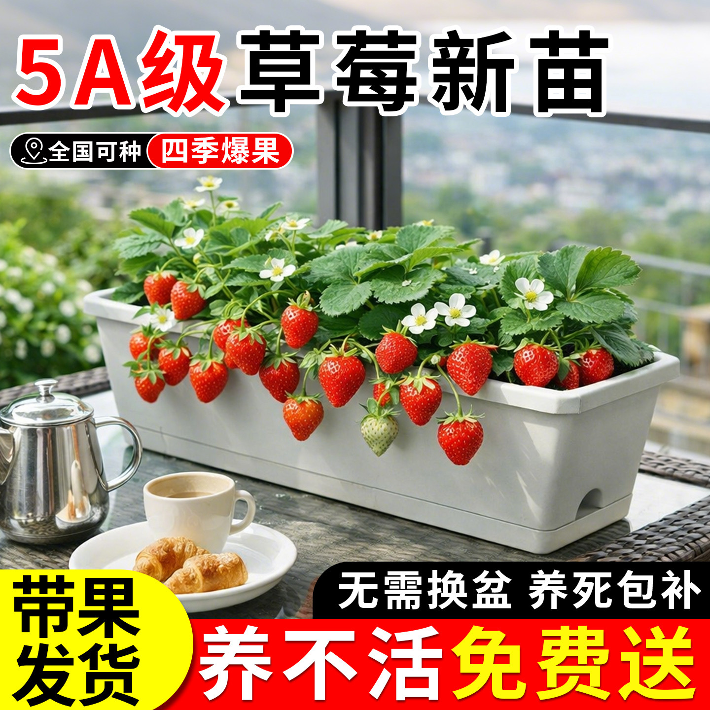 草莓盆栽带果黑珍珠玄玉奶油四季草莓苗秧室内阳台绿植果树苗批发