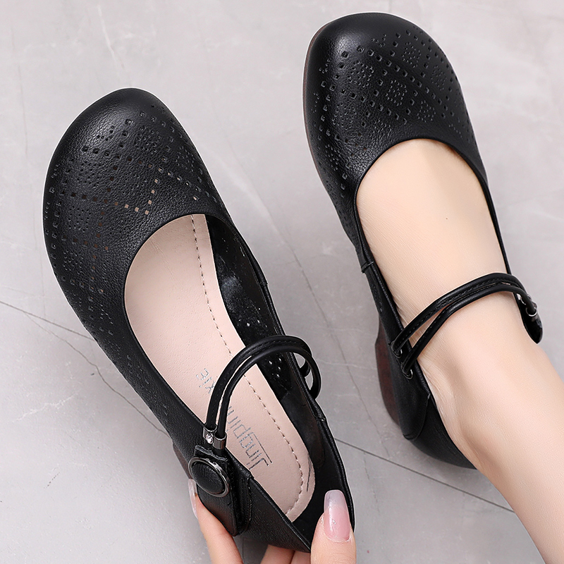 真皮妈妈鞋包头凉鞋女夏平底镂空妈妈鞋软底女单鞋舒适软皮小皮鞋