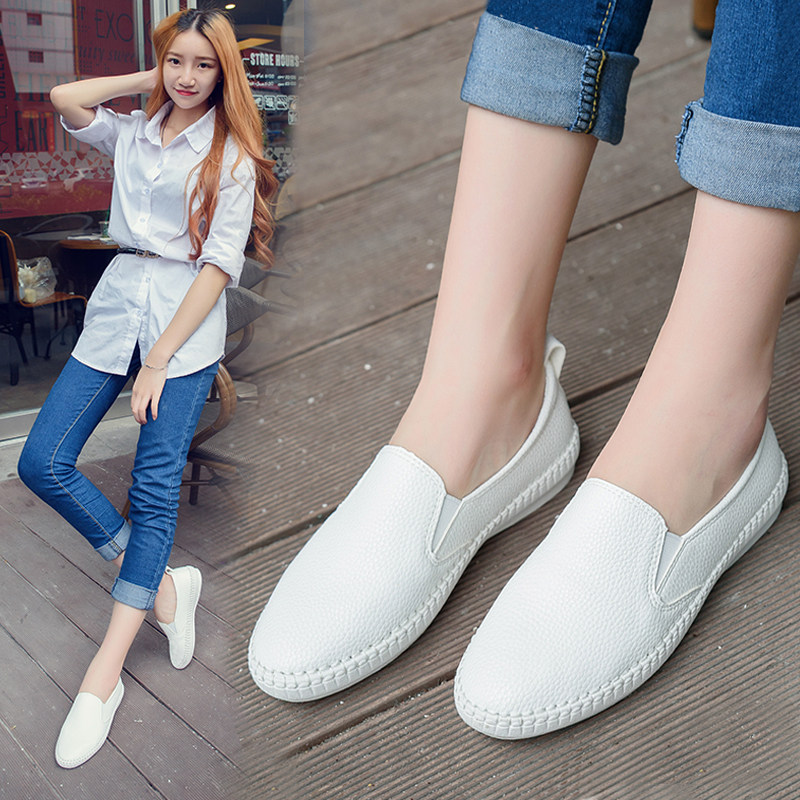 定做小码女鞋31 32 33孕妇单鞋秋平底真皮小白鞋女休闲懒人豆豆鞋